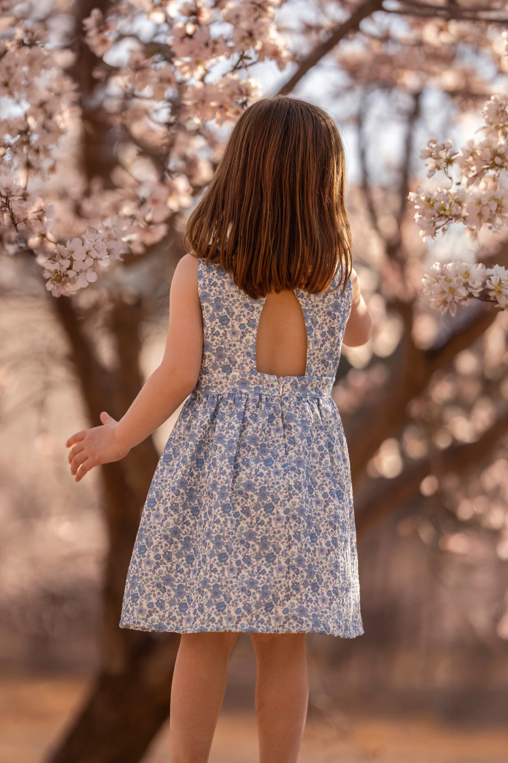 Vestido en gasa de algodón estampado exclusivo liberty Garden Blue Articulo 45067817